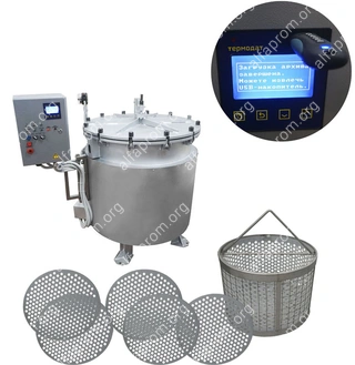 Автоклав выполнен из конструкционной стали с термостойким покрытием, также в состав входит одна загрузочная корзина из …