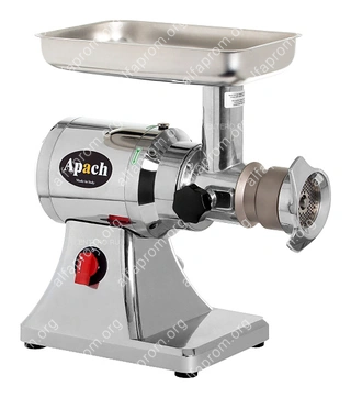 Мясорубка Apach ATS12U предназначена для измельчения мяса и рыбы в фарш, измельчения котлетной массы и набивки колбас на предприятиях общественного питания и торговли. Модель оснащена усиленным редуктором и вентилируемым асинхронным двигателем с защитой от перегрузок. Ножи, лоток и горловина выполнены из нержавеющей стали, мясорубочная часть - из пищевого чугуна, толкатель - из ABS пластика.