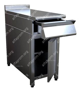 Закрытый нейтральный модуль Кобор N7-6EB предназначен для использования в составе тепловой линии в качестве дополнительного места для раскатки теста, обработки ингредиентов для приготовления блюд, установки оборудования и приборов. Модуль оснащен выдвижным ящиком, сплошной полкой, распашной дверцей и регулируемыми по высоте ножками. Корпус выполнен из нержавеющей стали AISI 430, каркас - из профильной трубы 40х40 мм.