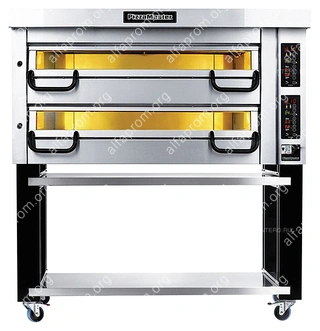 Печь для пиццы PizzaMaster PM722E используется на предприятиях общественного питания и торговли для выпечки пиццы, а также различных хлебобулочных и кондитерских изделий. Модель оснащена механической панелью управления и открытой подставкой на колесах с выдвижной и статичной полками. Корпус и камеры выполнены из нержавеющей стали, дно камеры - из обожженной глины.