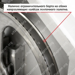 - Наличие ограничительного борта на обоих направляющих колесах ленточного полотна