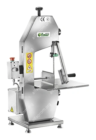 Ленточная пила FIMAR 2020А предназначена для нарезки на куски свежего и замороженного мяса, рыбы и птицы на предприятиях общественного питания и торговли. Модель оснащена аварийной кнопкой, микровыключателем на крышке и тормозом двигателя. Полотно выполняет ровный, гладкий срез без дробления кости. Рабочая поверхность, направляющая пилы и толкатель для мяса выполнены из нержавеющей стали.