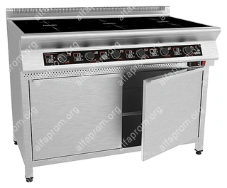 Индукционная плита Кобор I9-6SТ серии 900 предназначена для приготовления различных блюд в наплитной посуде на предприятиях общественного питания и торговли. Нагрев поверхности осуществляется почти мгновенно, а выделяемое тепло генерируется только на посуде, сама же плита нагревается незначительно, что позволяет избежать ожогов и потери тепла. Корпус выполнен из нержавеющей стали AISI 304, варочная панель - из монолитной высокопрочной стеклокерамики.