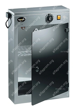 Стерилизатор для ножей Apach AUV16 используется на предприятиях общественного питания и торговли. Модель оснащена электромеханическим управлением, держателем, который позволяет обеззараживать ножи с двух сторон без необходимости их поворачивать. Корпус выполнен из нержавеющей стали AISI 430, дверца и держатель ножей - из плексигласа.