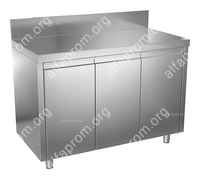 Производственный стол ATESY СТ-С-1.150-1300.600-02-Р-2П серии Стандарт используется на предприятиях общественного питания и торговли для разделывания и обработки пищевых продуктов, а также в качестве вспомогательной поверхности для кухонного оборудования. Модель оснащена 3 распашными дверцами и 2 переставными полками. Изделие выполнено из легированной стали, столешница дополнительно укреплена листом ламинированной древесностружечной плиты с внутренней стороны.