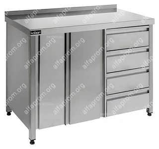 Стол-тумба Кобор СТ/1-150/60 произведена из высококачественной нержавеющей стали, что позволяет использовать предмет в различных цехах. Во избежание прогибов столешница усилена листом ламинированной ДСП толщиной 16 мм. Ножки изделия регулируются по высоте, для исключения проблем с неровным напольным покрытием, предотвращая наклон рабочей поверности.