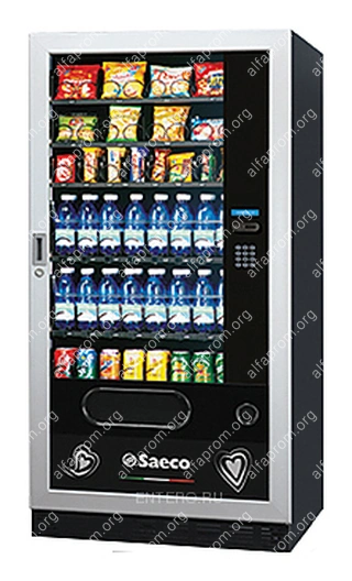 Торговый автомат Saeco MegaCold L предназначен для размещения в нем упакованной продукции в гостиницах, офисах, на предприятиях общественного питания и торговли и позволяет поддерживать необходимую температуру в постоянном режиме. Сухарики, чипсы, шоколадные батончики, напитки, орешки, сэндвичи и др. продукты помещаются в лотки со спиралями. При вращении спирали выбранный продукт попадает непосредственно в окошко выдачи. Корпус выполнен из стали.